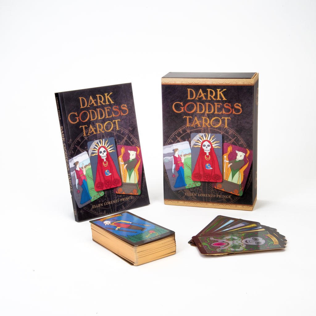 Powers of age and death, sex and sovereignty, ferocity and judgment—the Dark Goddess Tarot invokes these beings so that their wisdom may guide us through the darkness they traverse.
