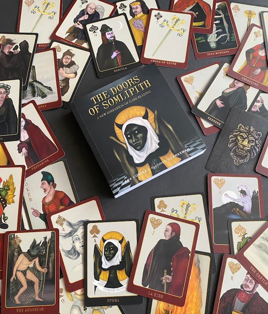 Ana Cortez works within a mystical lineage initiated by her father, CJ Freeman. Guided by their own psychic connection and the haunting imagery transmitted through CJ, their legacy includes numerous divination decks and publications and is featured in Meow Wolf’s House of Eternal Return.