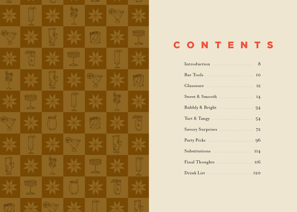 Starting with an introduction to the tools and glassware you’ll need, you’ll then delve into four chapters broken up by flavor profile, not spirit—from Sweet & Smooth and Bubbly & Bright to Tart & Tangy and Savory Surprises. Plus, there’s a bonus section on Party Picks, so you can share the mocktail love at a larger scale, too.