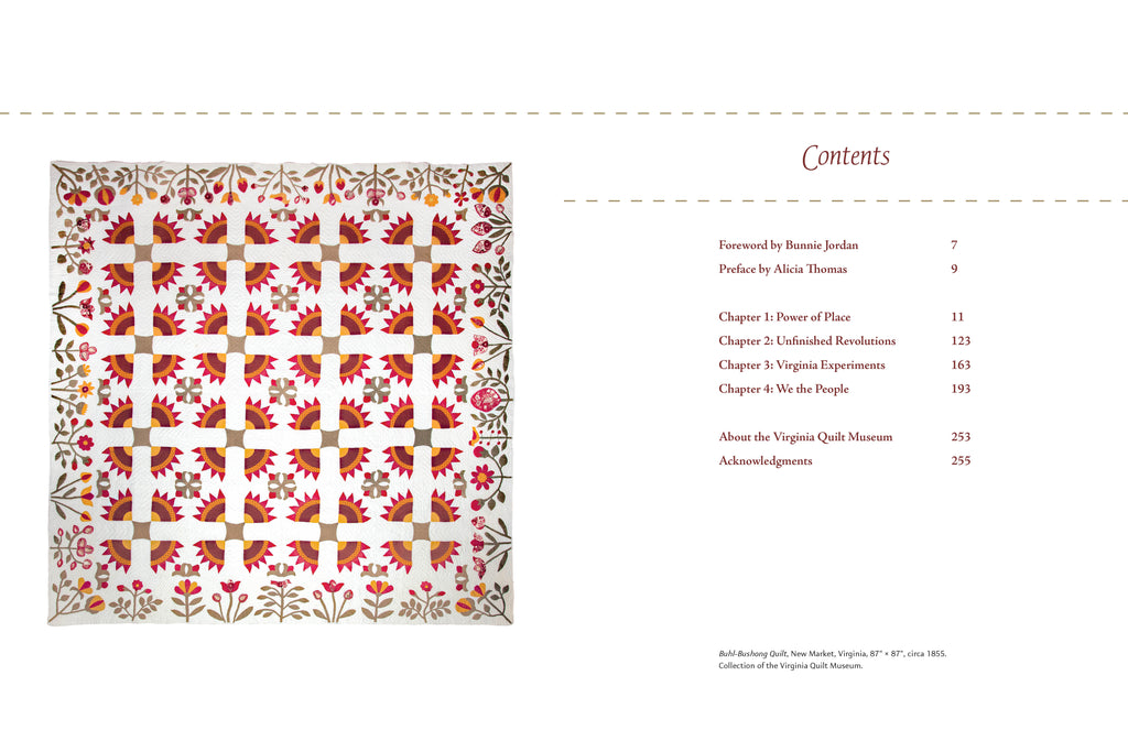 Mary Kerr is an American Quilt Society–certified appraiser, quilt curator, and award-winning quilter. She has been a quilt instructor for more than 40years, and her current lectures and workshops focus on quilt history and the preservation of antique textiles. She is the author of many books on quilting, including Southern Quilts. marykerr.comDonna Marcinkowski DeSoto is a fiber artist, art quilt curator, and the author of several quilt books, including Inspired by the Nation's Capital. She has resided in Virginia for more than 40 years, quilting all the while. inspiredquilts.comThe Virginia Quilt Museum cultivates and preserves the quilting arts in Virginia. Nestled in the heart of the picturesque Shenandoah Valley, the museum promotes quilting's unique blend of art and cultural heritage. vaquiltmuseum.org