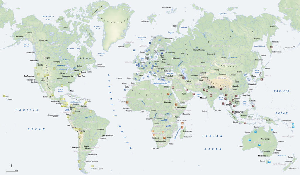 The list of over 100 destinations includes natural wonders such as the Chocolate Hills on the Philippine island of Bohol, and architectural wonders such as the Sun Miracle at Abu Simbel.