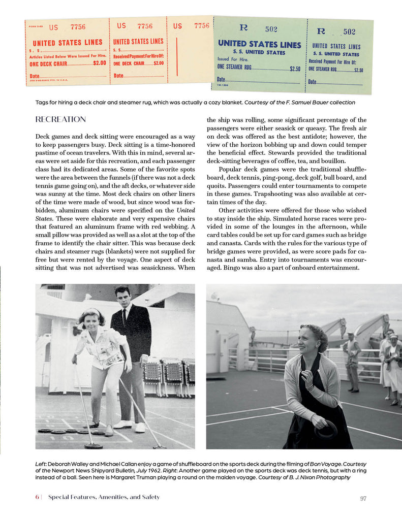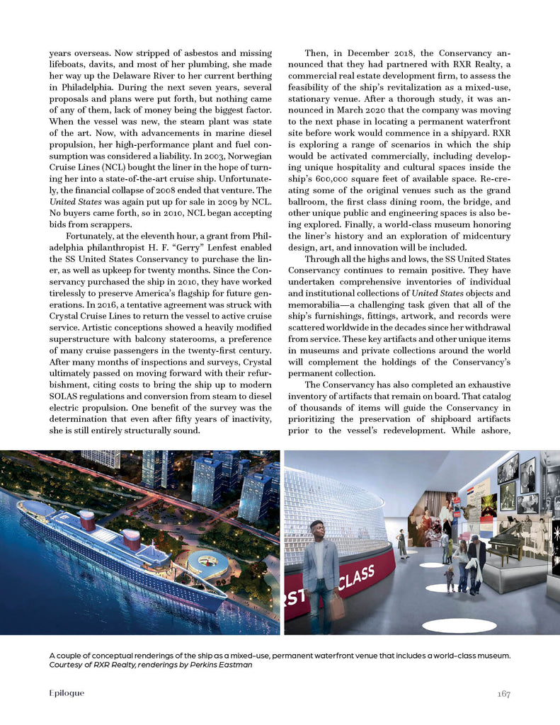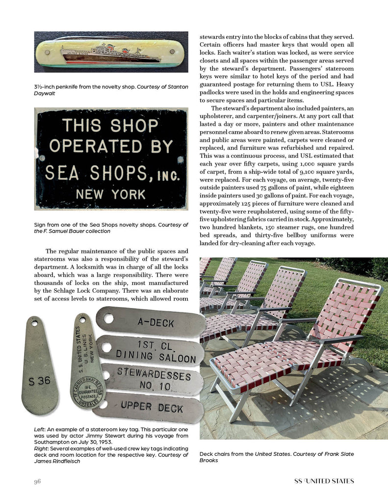 Jim Rindfleisch's first steps aboard SS United States were in 1984, when the ship was opened for tours. With repeated visits and an eventual ascension to ship’s caretaker, he gained a detailed knowledge of the general workings of the ship. A professor of psychology, Sam Bauer spent countless hours aboard the laid-up superliner SS United States, collecting items and documents. Along with Stanton Daywalt, he has edited and expanded this book, first drafted by the late Jim Rindfleisch. Before assisting Sam Bauer with Jim’s original manuscript, Stanton Daywalt already had an extensive knowledge of SS United States. After reading and digitizing Jim’s massive collection of ship documents, Stanton learned even more that contributed to this book’s details.